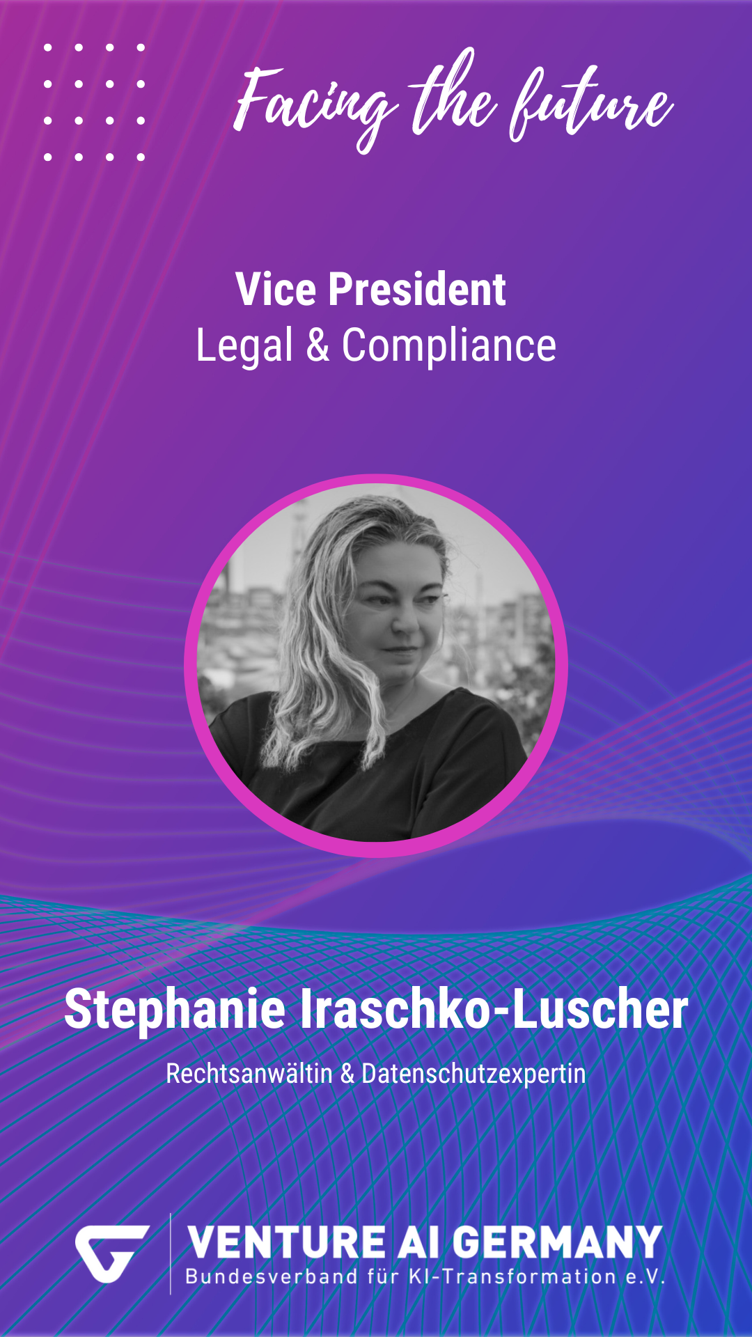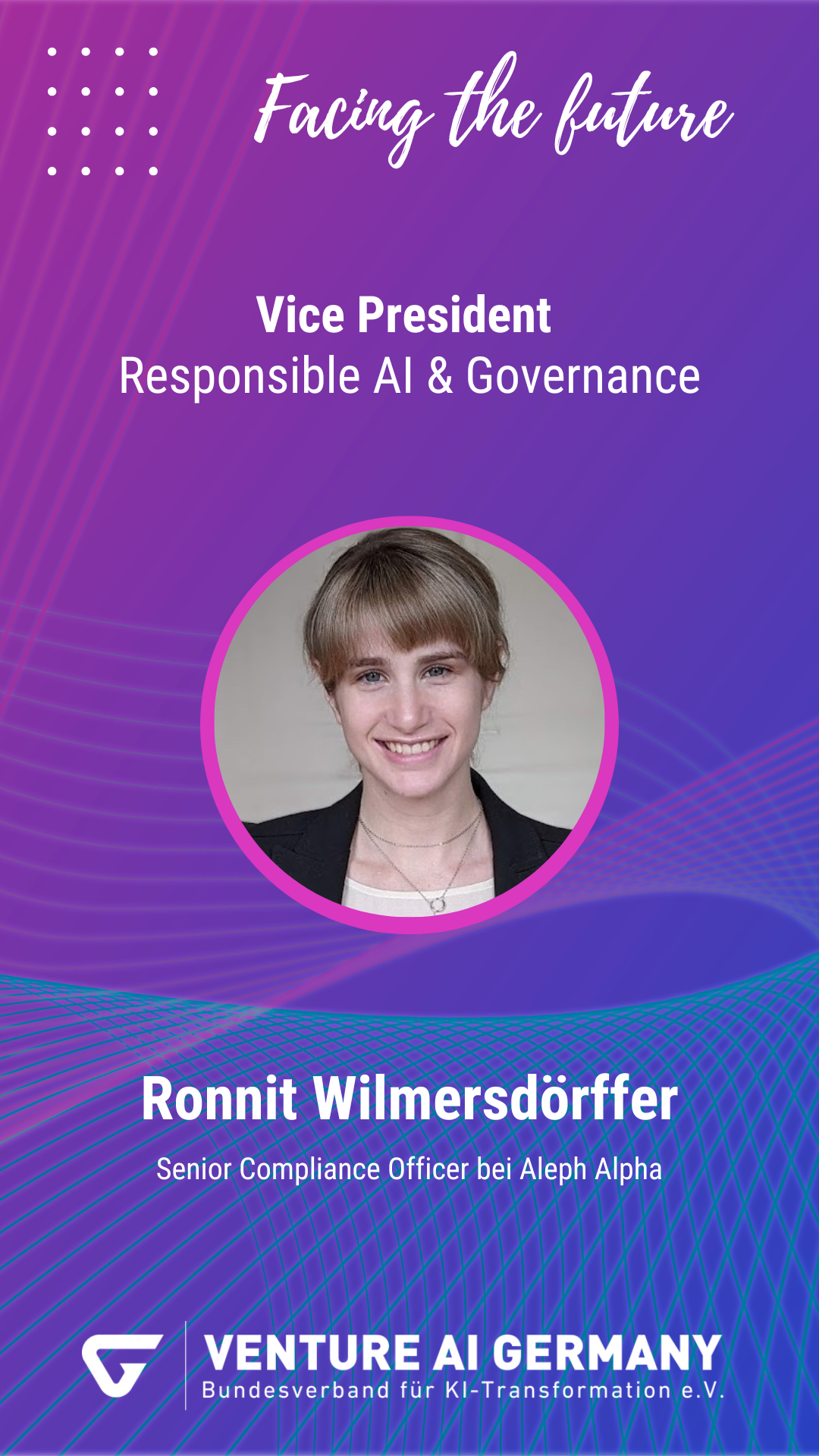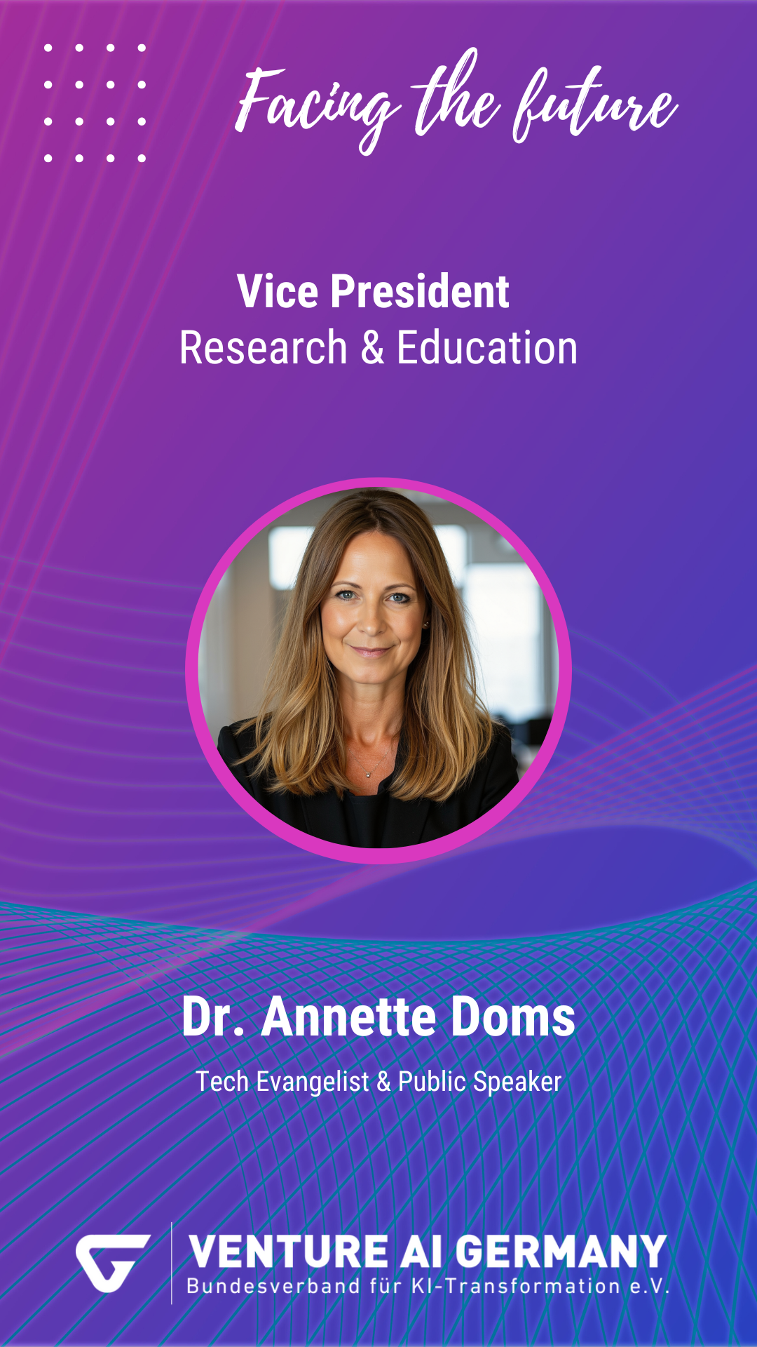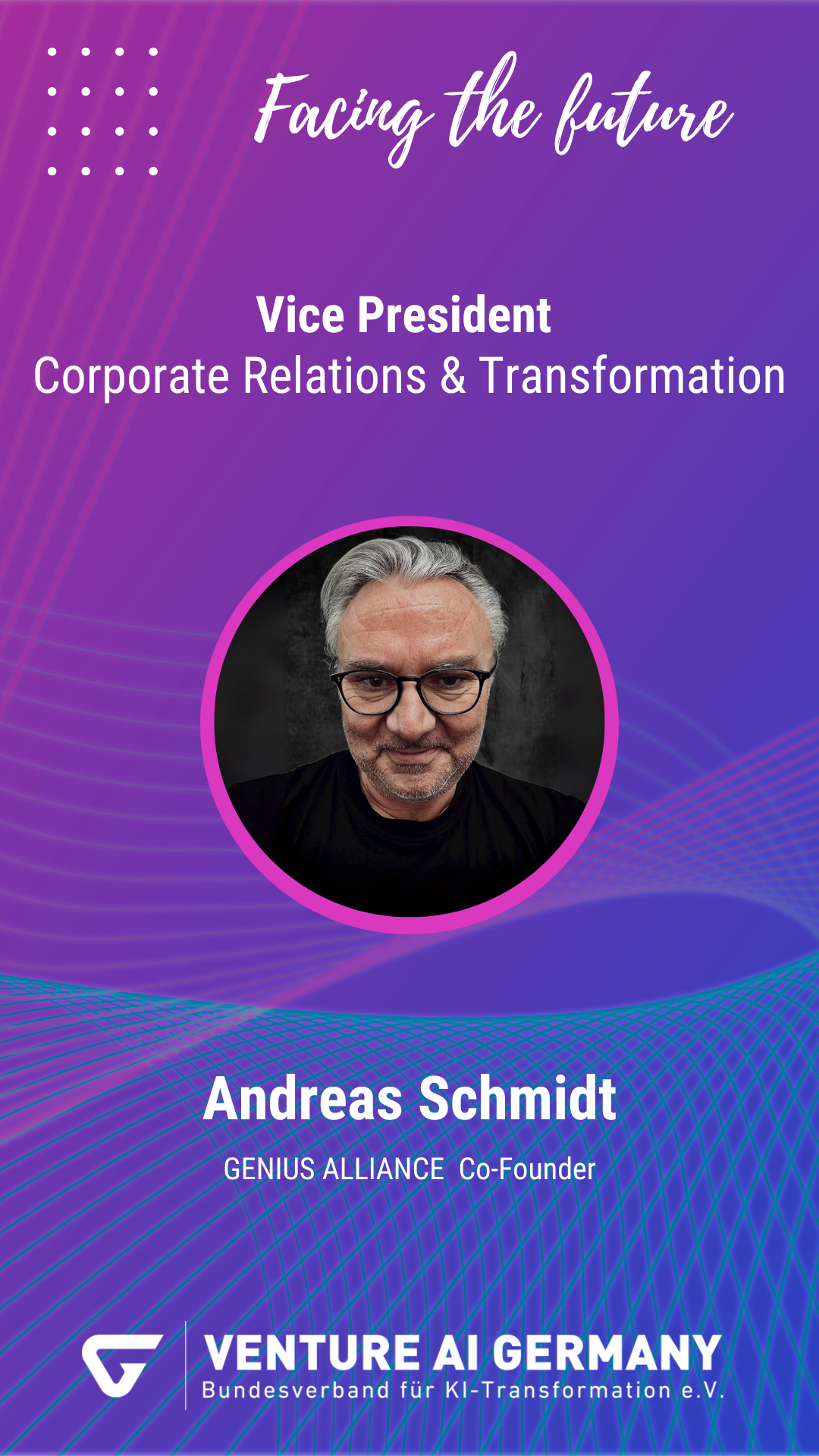 The Federal Association is headed by CEO Norman Müller, Forbes AI expert with over 20 years of experience in digital transformation and applied artificial intelligence. He is supported by Stephanie Iraschko-Luscher, association lawyer and renowned data protection expert, who ensures responsible and future-proof development with her legal expertise, and Anna Kopp, digital expert and patron of the association, who contributes her international experience and strong commitment to digital innovation.